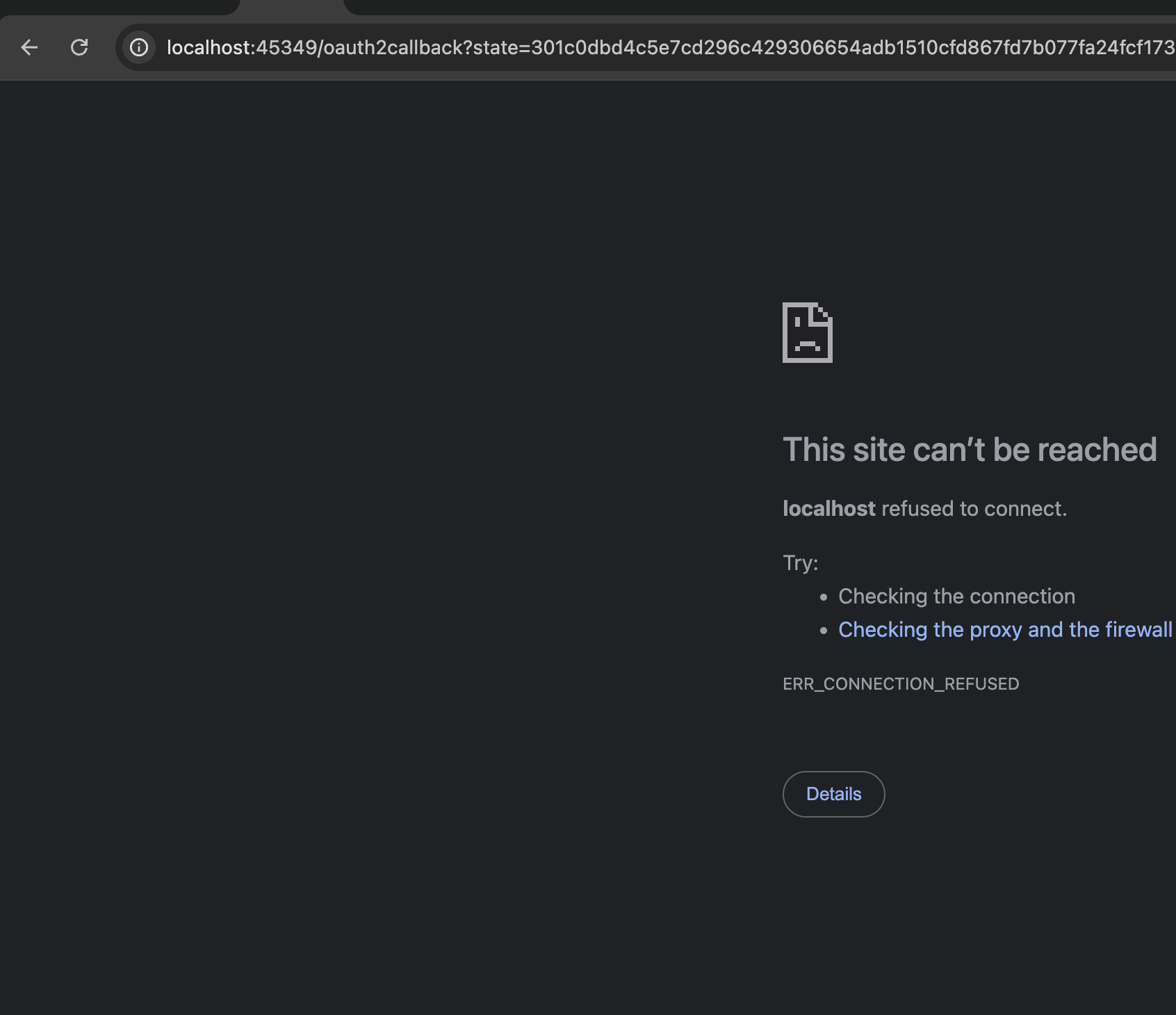 It breaks because the URL contains a Call-back reference to localhost:{PORT#}, but your Codespaces instance is running on an external url https://codespaces_id-{PORT#}.app.github.dev/