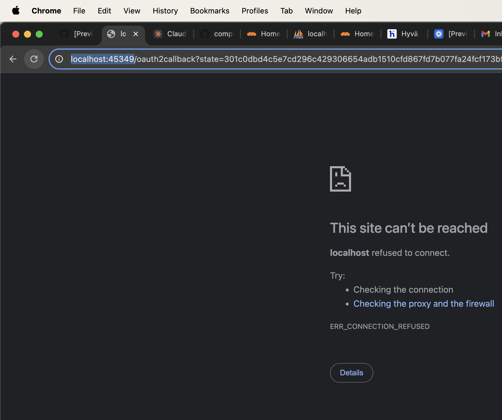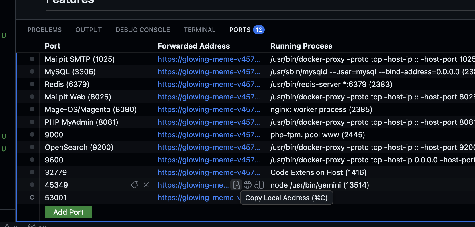 To fix this look in the Codespaces Ports Tab, you'll see a newly opened port for Gemini or Claude. In my example it's on port 45349.